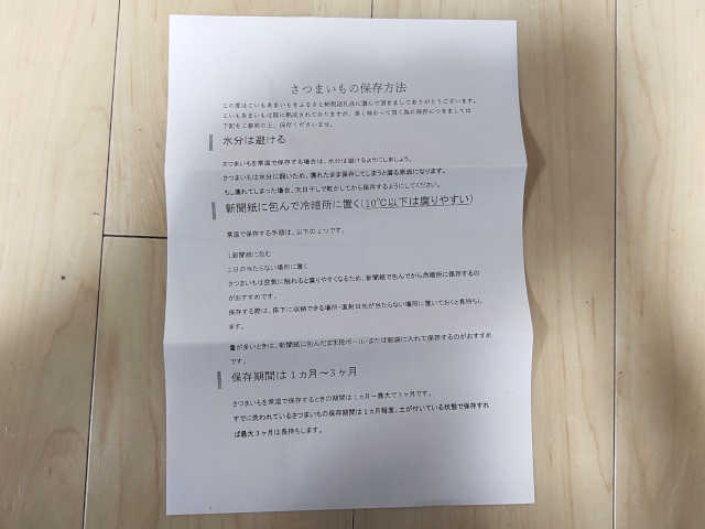 西脇市のさつまいもには、保存方法の説明書